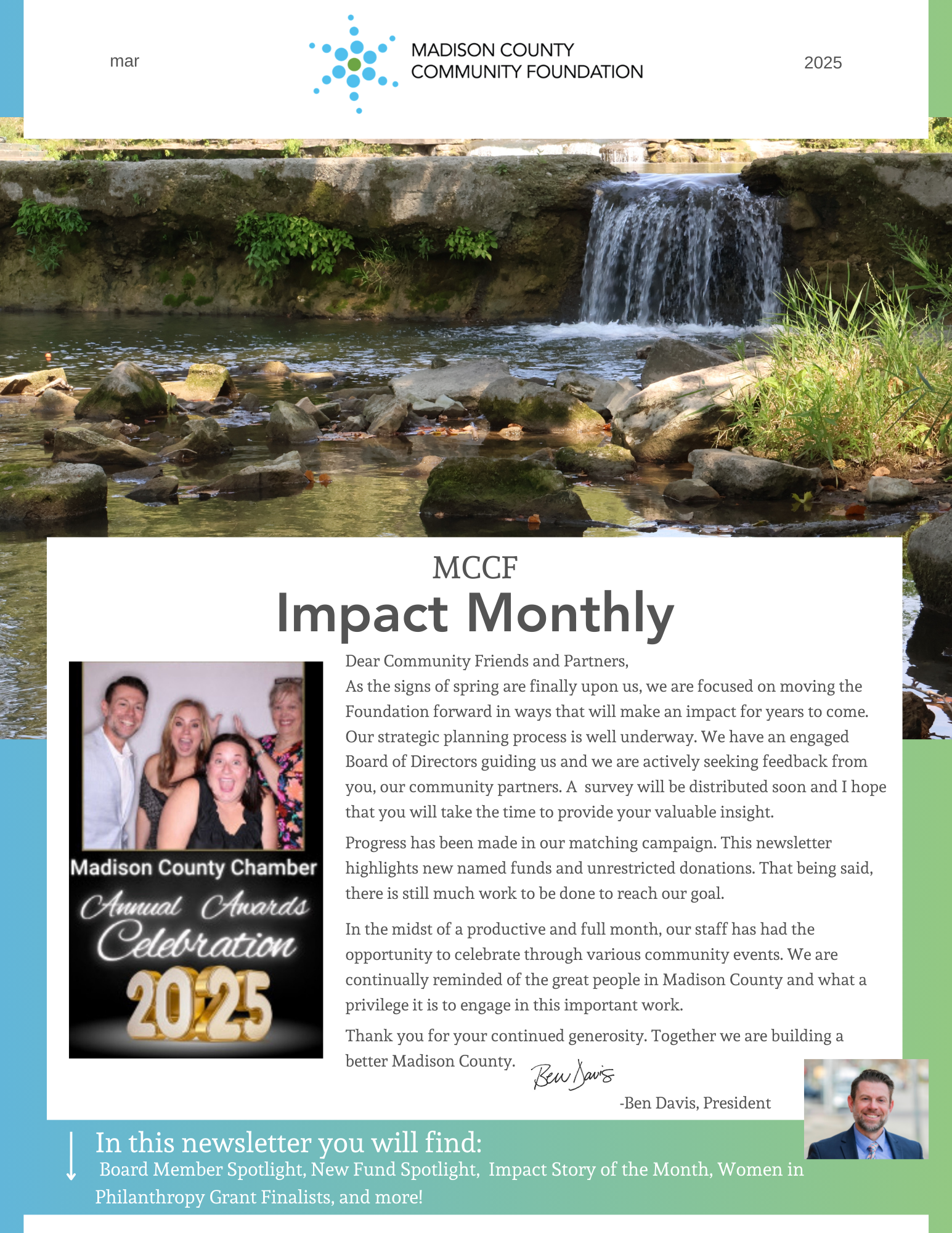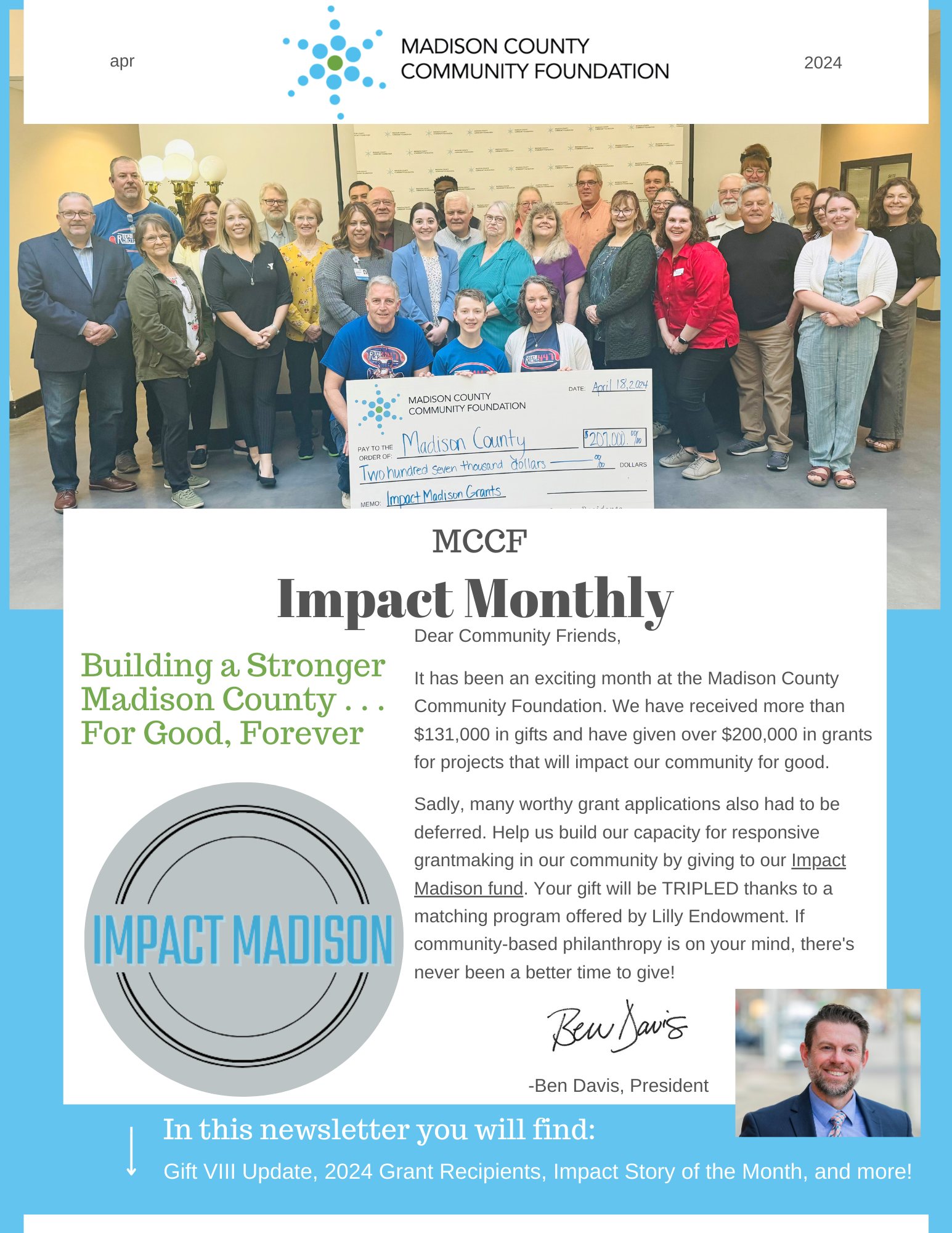 Keep in the know with monthly updates from Madison County Community Foundation in the Impact Monthly newsletter. Stay informed about events, impact stories, donation opportunities, and more!
